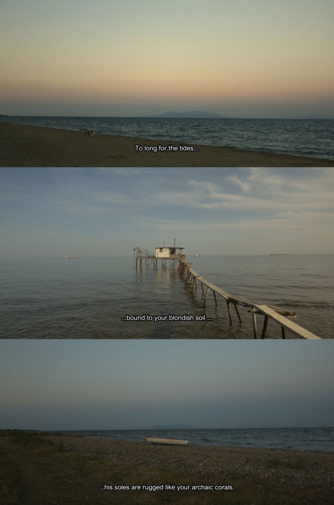 “I am here now, looking at the fields laying afar, and there is an ancient sound that I obliquely recognize. I try to name it, in every thought. I try to put this feeling, the awareness of this presence, to a place in space-time. It has to be somewhere there.