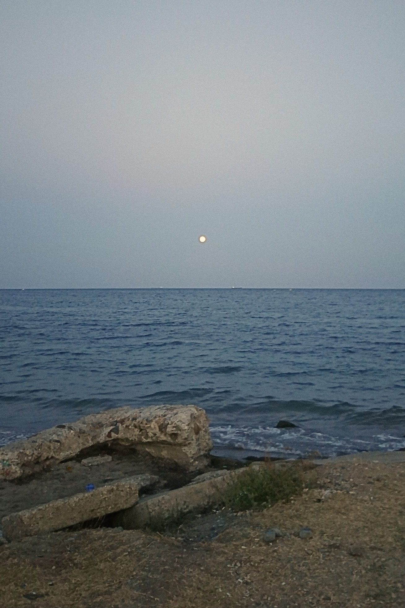 Blood moon rises over the horizon